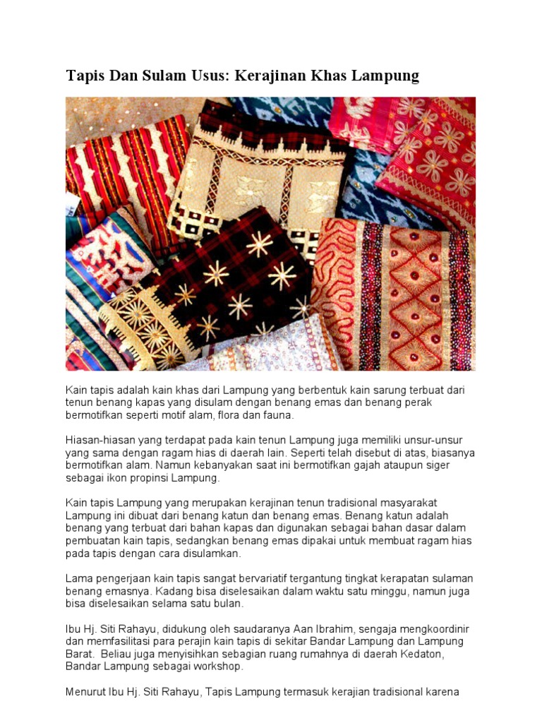 Kain Tapis Lampung Oleh Kelompok 16 Korten Ahmad Salsabila Ppt Download from slideplayer.info Kain tapis disulam dengan menggunakan. Maybe you would like to learn more about one of these? We did not find results for: Check spelling or type a new query.